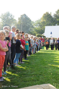 ![]() Podliczanie punktów. | ![]() Rodzinny piknik tuż przy jeziorze. | ![]() Ekipy rodzinne na uroczystym apelu. |